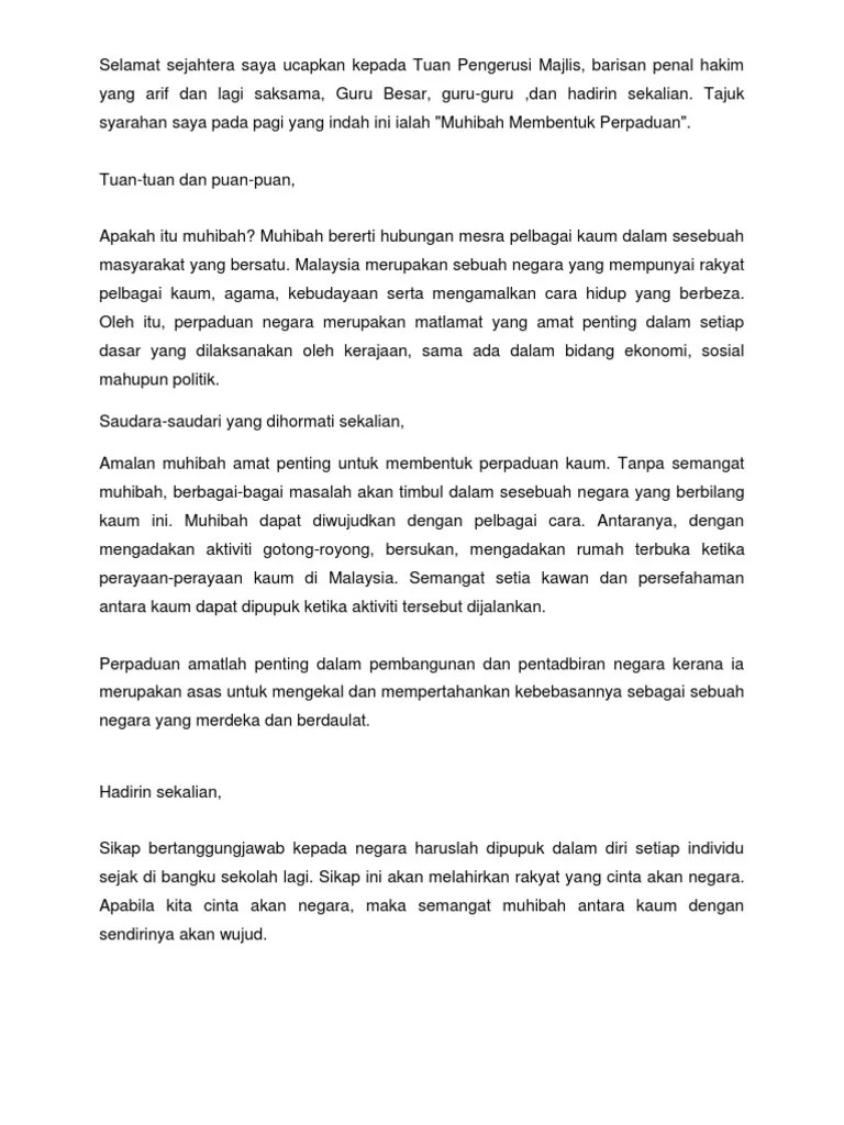 Dalam konteks ini, konsep bahasa atau perpaduan merujuk kepada bahasa malaysia ataubahasa kebangsaan yakni bahasa melayu. Kami berharap agar blog ini nanti boleh menjadi . Teks syarahan agama bahasa melayu sekolah menengah. Berikut adalah teks syarahan pemenang pertandingan syarahan bahasa malaysia sekolah saya. Sejambak mawar seharum kasturi buat pimpinan majlis barisan kehakiman intelektual .